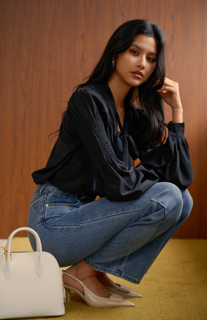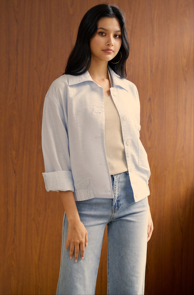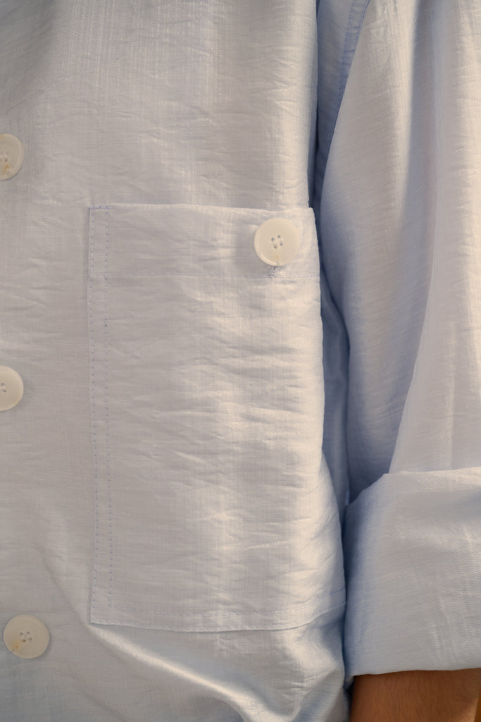 Spring date silky shirt in blue is backordered. We will ship it out separately after 21-30 business days.