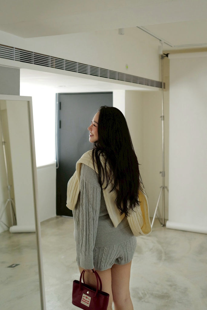 Knit cable elastic shorts