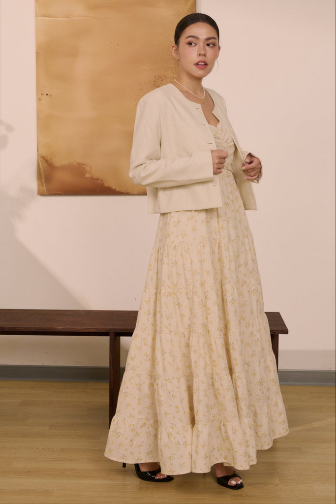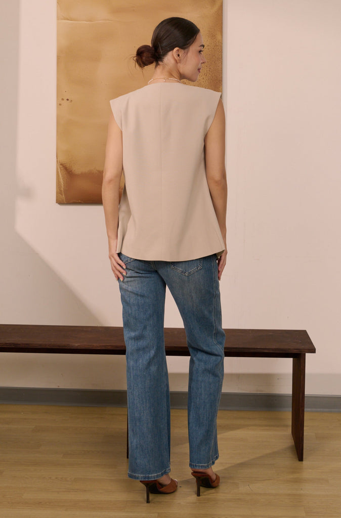 Soft power blazer in beige is backordered. We will ship it out separately after 21-30 business days.