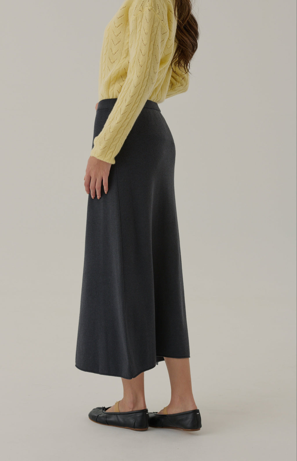 Soft drape knit skirt in grey is backordered. We will ship it out separately after 21-30 business days.
